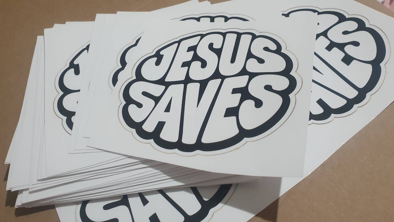 Cole o adesivo Jesus Saves com estilo, e divulgue mais essa importante mensagem : Jesus Salva.